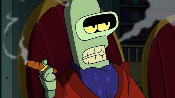 Se comporta aparentemente como un humano, aunque adapte la parte menos glamurosa de los mismos: adicto al vicio, a las apuestas ilegales y a las robopilinguis. Bebe constantemente alcohol para mantenerse libre de óxido, según justifica mientras fuma puros. Su frase característica: «Besa mi brillante trasero metálico». Quién no querría ser amigo de alguien así… ¿o no?